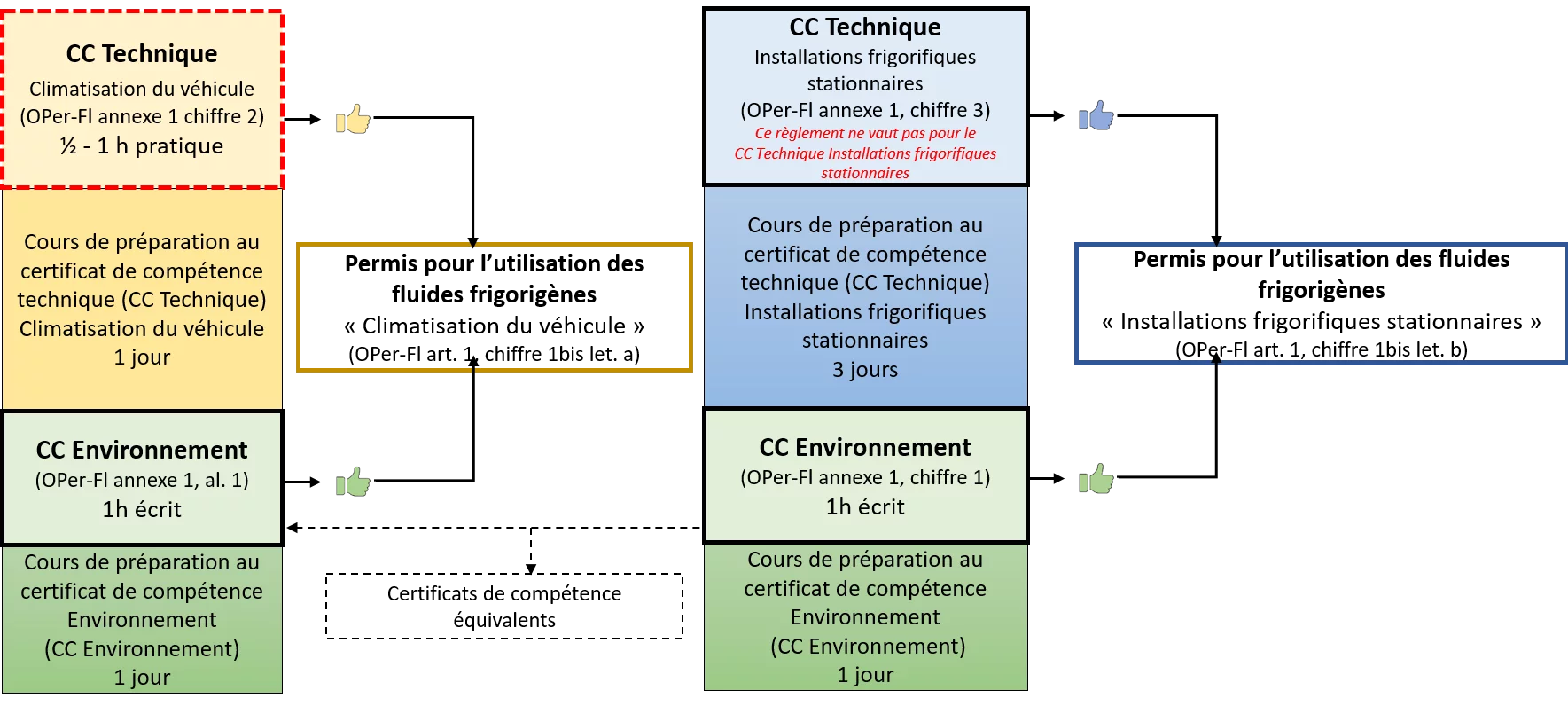 L’introduction de la « formation technique » doit permettre aux personnes suivant la formation non seulement de connaître les dangers et les risques des fluides frigorigènes mais aussi de pouvoir effectivement effectuer des travaux sur la climatisation sans pertes de fluides frigorigènes.